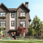 With three bedrooms and two full bathrooms on the upper floor, this home brings balanced spaces and smart storage to growing families. The main floor has a dining area at one end and a living space with private balcony at the other – perfect for entertaining friends and family. With 10-ft ceilings and large windows, this home has a light and lofty feel. Down on the lower floor, there’s tandem parking for two cars, and plenty of room to store bikes, scooters and strollers.